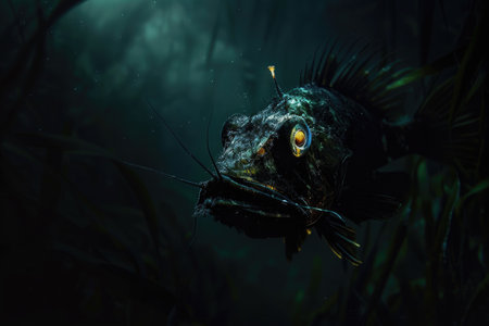 An eerie abyssal anglerfish prowling the depths of the ocean