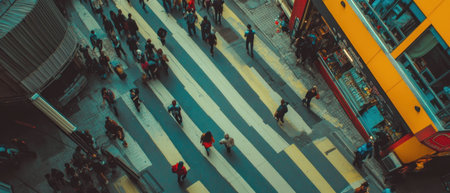 Cinematic top view of a bustling city street filled with vibrant life and color