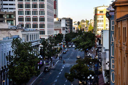SAN DIEGO/CALIFORNIA, AUGUST 17, 2017: Evening view on the street in San Diego Downtown.
