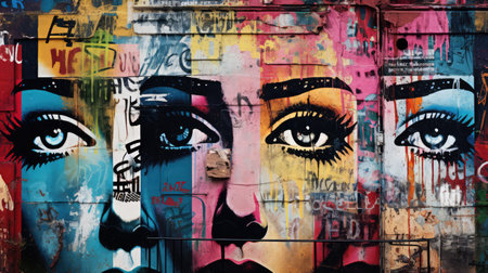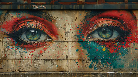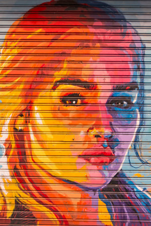Vibrant street art portrait of a woman with bold colors and intricate details