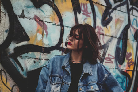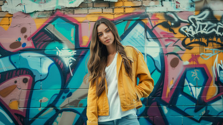 Young Woman Posing Against Graffiti Wall in Urban Street Fashion Style.