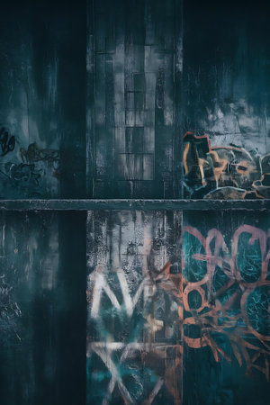 Urban art in a hidden place Colorful and detailed graffiti, gloomy atmosphere, underground atmosphere
