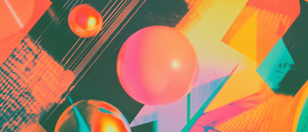 Geometric shapes and vibrant colors create abstract music background with clear center area