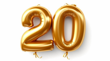 A golden balloon number 20 on a white background. Created with Generative AI technology