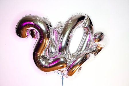 Number 20 silver foil balloon isolated on white background. Happy New Year