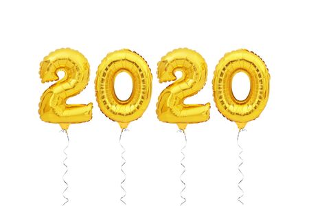 happy new year 2020 number of gold foiled balloons isolated on white background