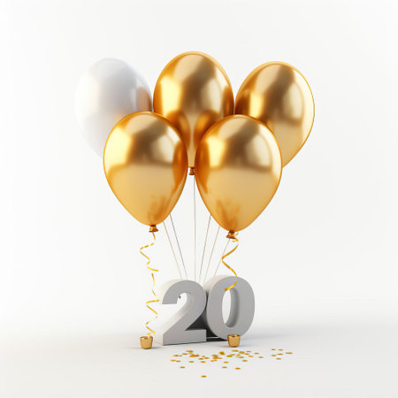 Twentieth Birthday Celebration with Golden Balloons and Colorful Confetti Decorations