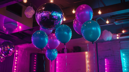 A vibrant bunch of colorful balloons floating gracefully in the sky above, Holographic balloons for a futuristic birthday party theme, AI Generated