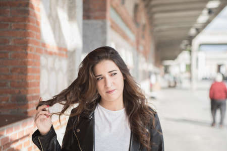 Beautiful Middle Eastern girl with long hair posing in an urban context