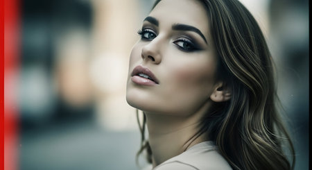 Portrait of a beautiful young woman with makeup and hairstyle.