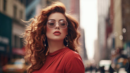 Portrait of business woman. Sexy business lady. Red-haired girl in sunglasses