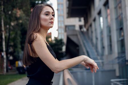 Street vogue. Fashion girl portrait. City style. Fashionable woman outdoor.