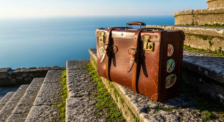 Old vintage brown leather suitcase ready for travelling Vintage Retro Filter.