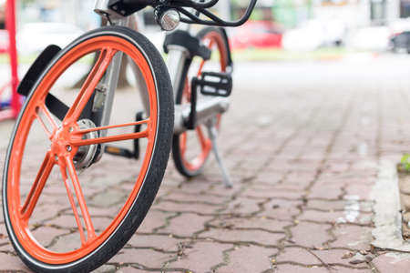 Selective focus of Bicycle parking on the sidewalk