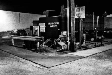 Trash in a parking lot at night in Hanover, Pennsylvania.