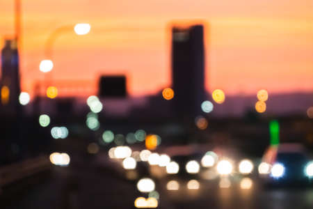 abstact blur bokeh of Evening traffic jam on road in city., night scene