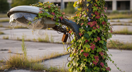Cinematic depiction of a street overrun with trash and debris, highlighting urban decay and neglect