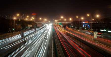 busy big city traffic trail night cityscape at Guangzhou China