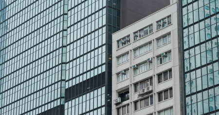 Modern business centers and office building with new modern exterior design in metropolitan city. Apartment hotels in midtown
