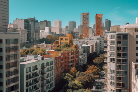 Generative AI Skyscrapers Cityscape Downtown, San Francisco Skyline Buildings. Beautiful Real Estate