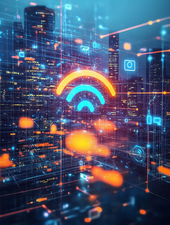 Wifi network on blurred business center background.