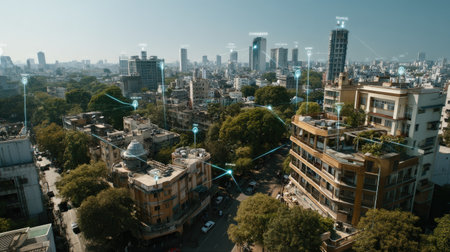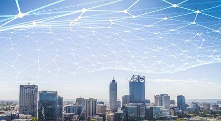 Urban network connection. Internet of things (IoT) concept.