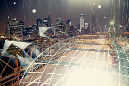 Double exposure of cityscape and network connection, business and technology concept