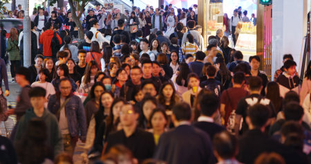 Causeway Bay, Hong Kong -22 February 2019: Crowded of People cross the road at night