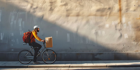 Fast cyclist courier riding through city streets with motion blur and dynamic light, ideal for delivery apps and urban mobility campaigns.