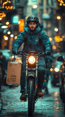 The fast-paced life of a motorcycle courier as they navigate city streets, ensuring quick and efficient deliveries in a crowded urban area.