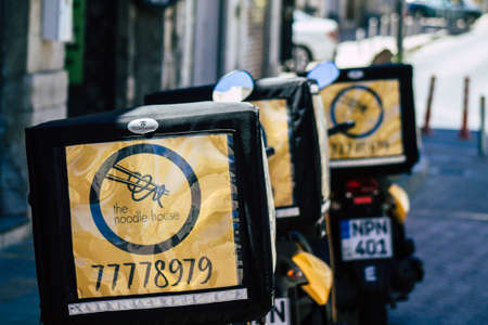 Limassol Cyprus May 24, 2020 View of scooters parked front a restaurant in the streets of Limassol in Cyprus island