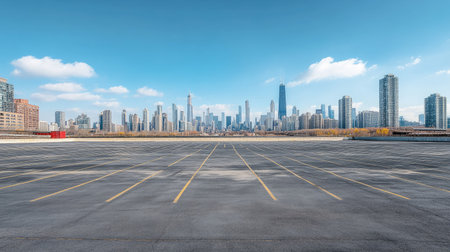 Generative AI Empty space top floor car park with modern skyscraper building .