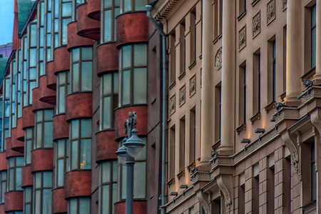 Saint Petersburg, Russia-June 2019: Windows and balconies of residential buildings in the city.