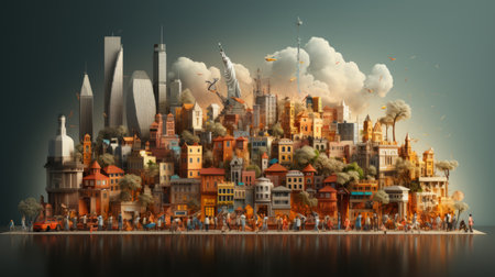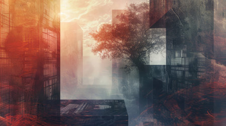 A distorted and warped skyline with skewed perspectives and angles AI generated