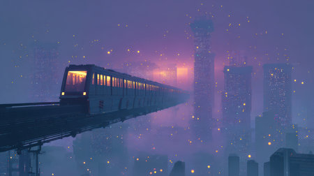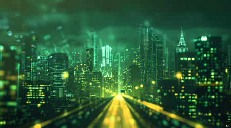 Digital connections and globalization transforming modern city skylines at night
