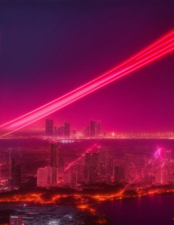 red laser light in the sky, at night illustration