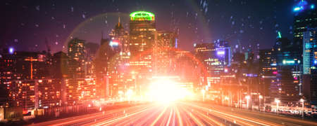 Abstract futuristic night city, Concept for IOT, smart city, speed connection and taintless advanced communication network.