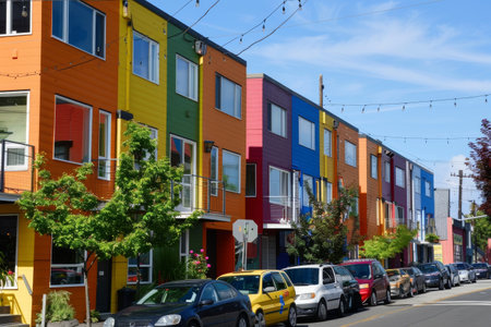 Vibrant Neighborhood with Colorful Houses in a Row Showcasing Unique Architectural Styles and Charm