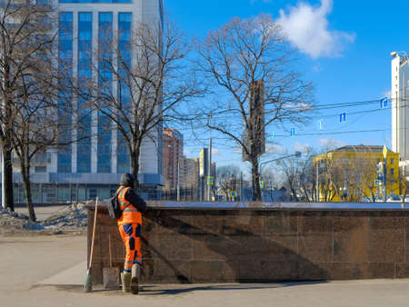 Vienna, Austria - November 10, 2015: man is sweeping outdoor in Vienna Austria