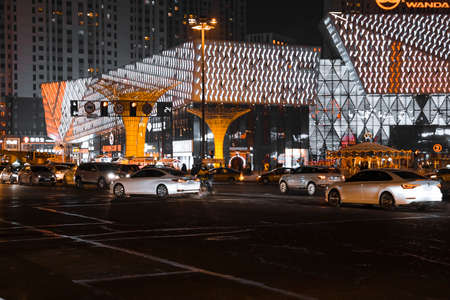 Jeju, South Korea, september 03, 2019: view from above on walking and shopping street at night