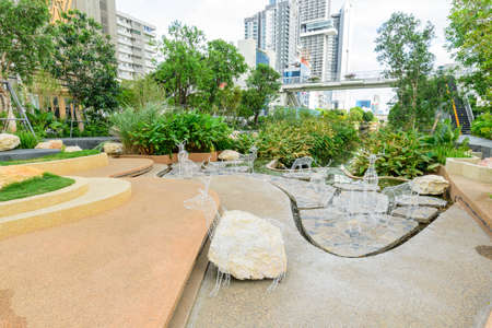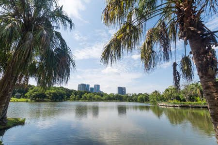 Public park in the big city. Place and outdoors concept. Nature and landscape theme. Bangkok Thailand location.