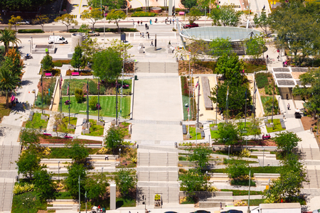 View from top of Grand Park in Los Angeles city during summer sunny day, USA