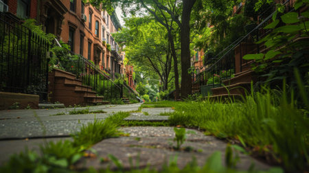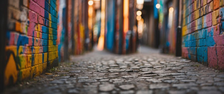 AI Generated. Colorful Graffiti Alleyway with Cobblestone Path