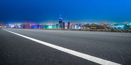 Asphalt road and modern city skyline panorama in Hangzhou,China.