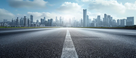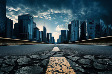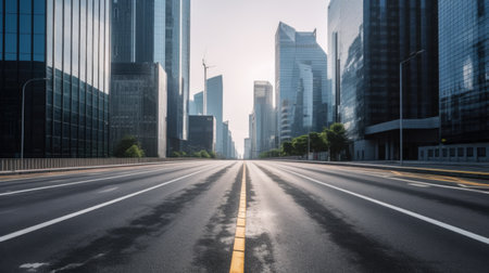 Empty highways and urban skylines, A photo of Empty asphalt road and modern city AI generated