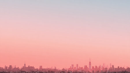 A vector illustration of the city skyline at sunrise, with buildings silhouetted against the pastel colors of the blue and orange sky. The design is minimalistic yet vibrant, featuring geometric shapes for the skyscrapers and a clear horizon line. It's suitable as an icon or background element in digital marketing materials or social media graphics. --ar 78:43 --v 6.1 Job ID: 19585e43-f0fb-4142-836f-77f7b6f5597c