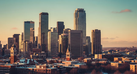 Boston Skyline at sunset, Boston, Massachusetts, United States.