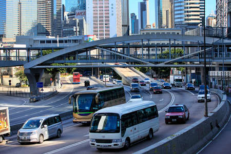 HONG KONG, S.A.R., CHINA - JENUARY 29, 2014: An elevated pedestrian walkway, International Finance Centre Mall on Jenuary 29, 2014 in Hong Kong, China.