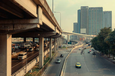 Bangkok, Thailand - January 13, 2020: Beautiful morning time image of traffic on road with moving cars, Bangkok Thailand.