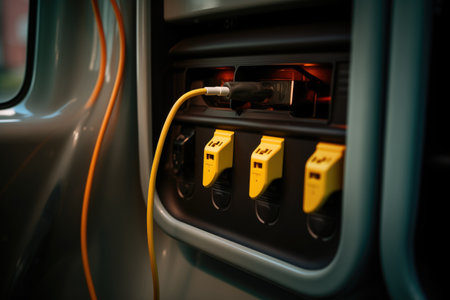 detailed shot of plug-in spot on an electric bus, created with generative ai
